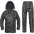 • Set impermeabil din două piese: haină de ploaie ¾ cu glugă integrată în guler şi pantaloni cu talie elastică