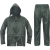 • Set impermeabil din două piese: haină de ploaie ¾ cu glugă integrată în guler şi pantaloni cu talie elastică